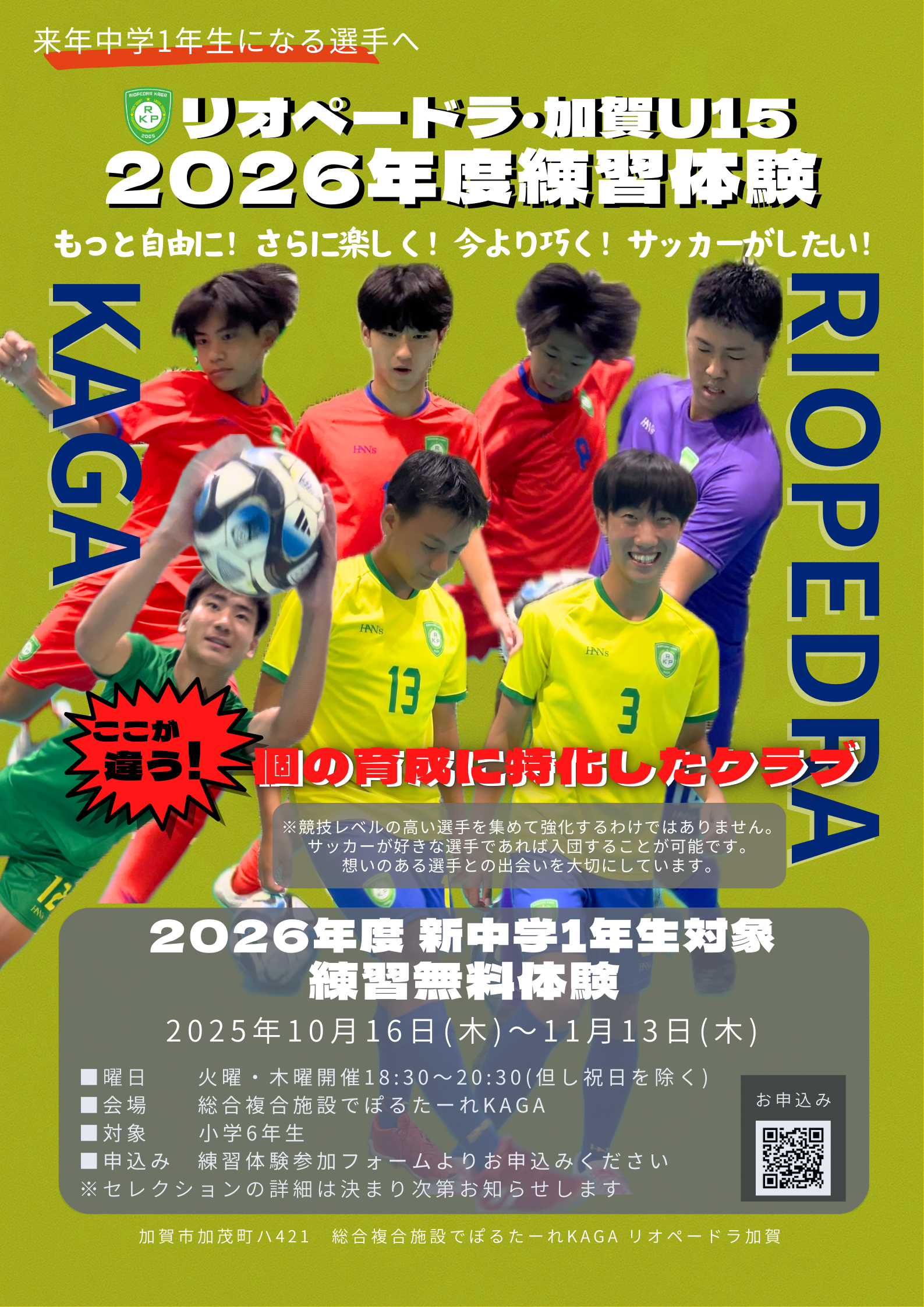 2023/10/032024年度 新中学1年生対象 【体験練習会&セレクション】 2023年10月12日(木)よりスタート! ■火曜・木曜開催 1 ...イベント情報