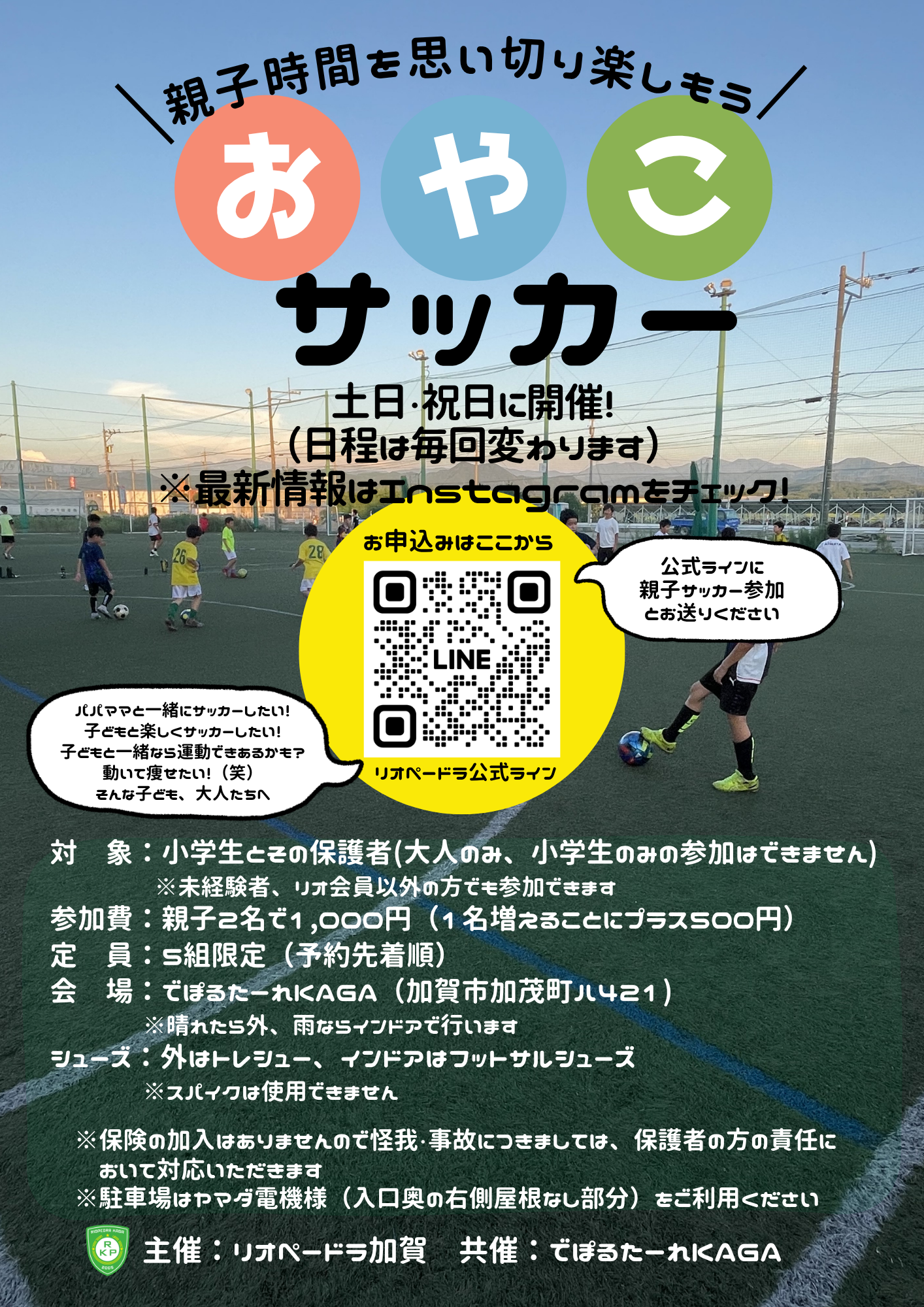 【毎月2回 先着5組限定!】親子サッカー4月の日程2026年03月23日「最近、お子さんと全力で笑い、全力で汗をかいたのはいつですか?」 子どもの成長は、私たちが思うよりもずっと早いものです。 一緒にボールを追い ...